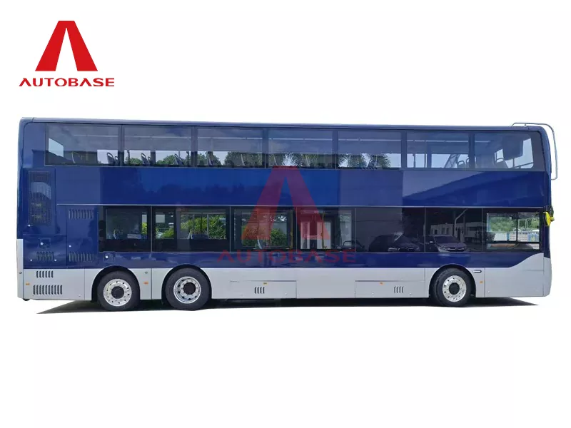 Deze puur elektrische dubbeldekkerbus van 12 meter, ontworpen en gebouwd in China door een toonaangevende fabrikant, wordt geproduceerd in een ultramoderne fabriek en aangeboden via een betrouwbare leverancier. Het gehele voertuig is 12.000 mm lang met lage vloeren voor en achter, een hoogte van 4250 mm, een wielbasis van 5950+1500 mm en voor-/middendeuren met een nettobreedte van ≥1000 mm. Het heeft een maximale snelheid van 90 km/u en beschikt over een zitopstelling van 82+1 zitplaatsen, met een totale capaciteit van 98+1 passagiers, waaronder 55 zitplaatsen op het bovendek, 27 zitplaatsen op het benedendek, 2 klapstoelen en 4 zitplaatsen met voorrang.
